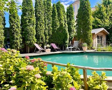 Nutzung unseres Garten SPA mit Saunen, Schwimmteich und Ruheoasen